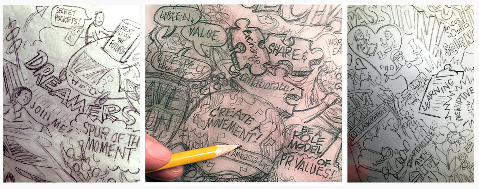 What I really enjoy about this work is the interpretation of the finished posters: how the client steps back for a good look and nods in approval at the information covered -and- uncovered. This process often lead to additional illustrations for new material that spring from the insights-just like what I discovered when looking at this group of posters to create the blast of action shown above...